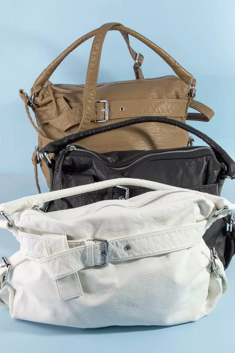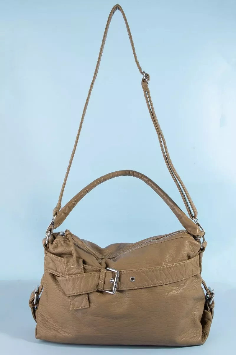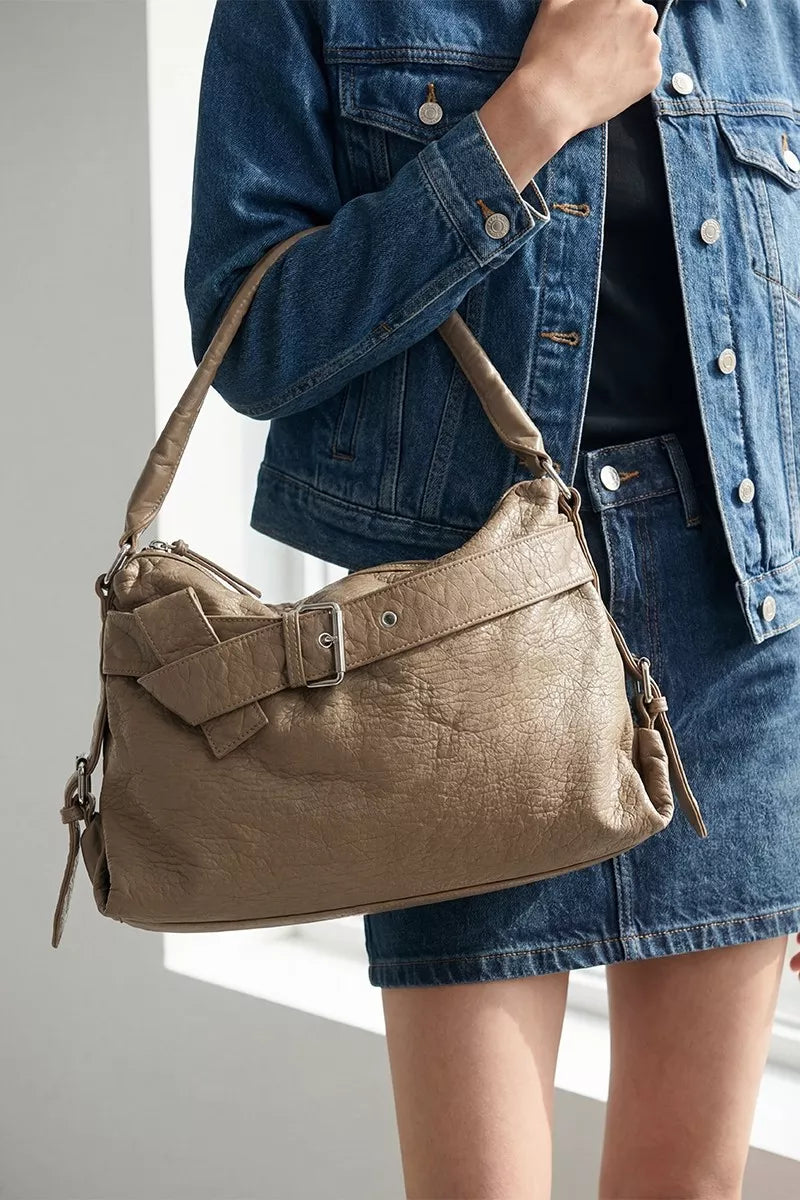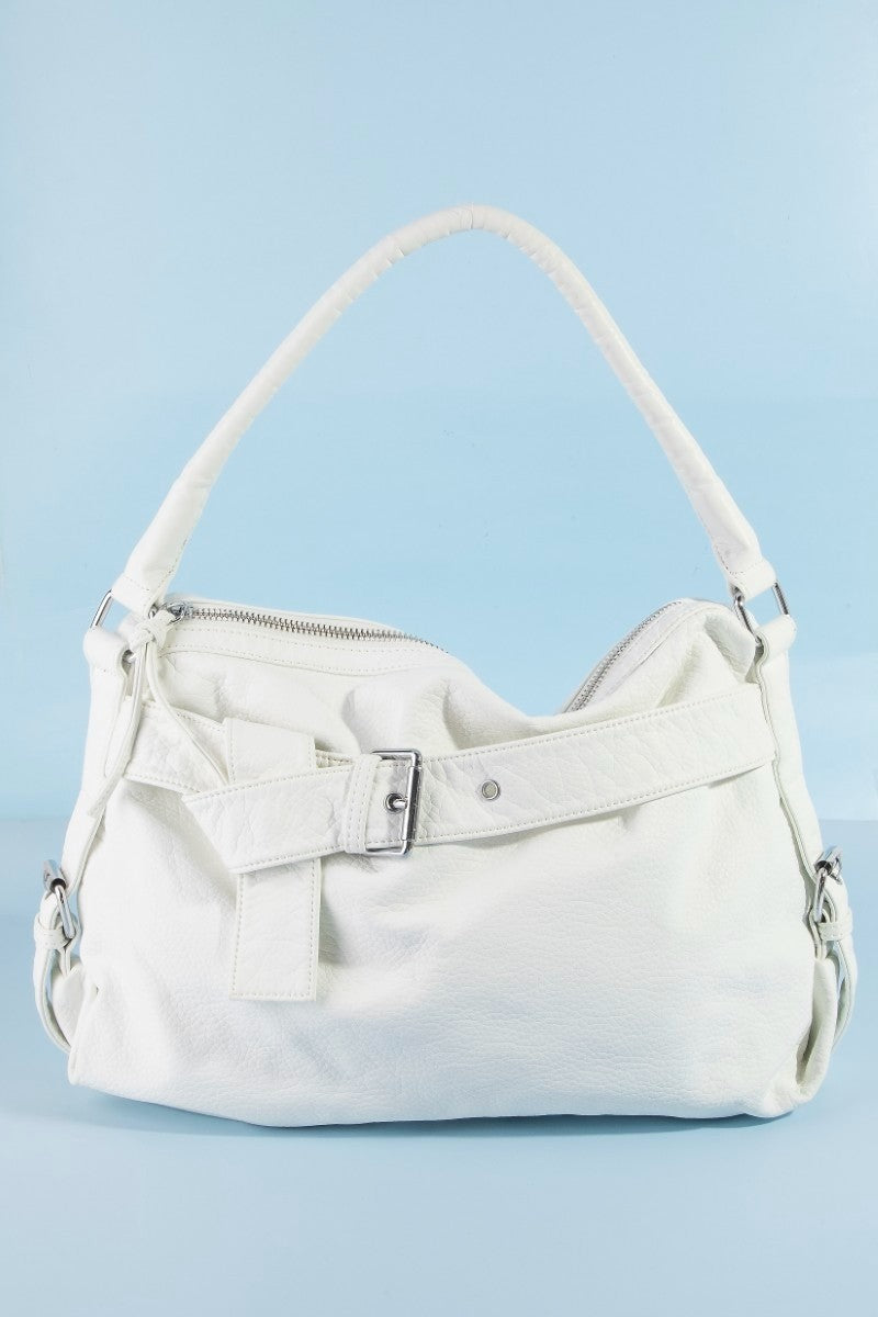 Fame Buckle Strap Detail Leather Handbag