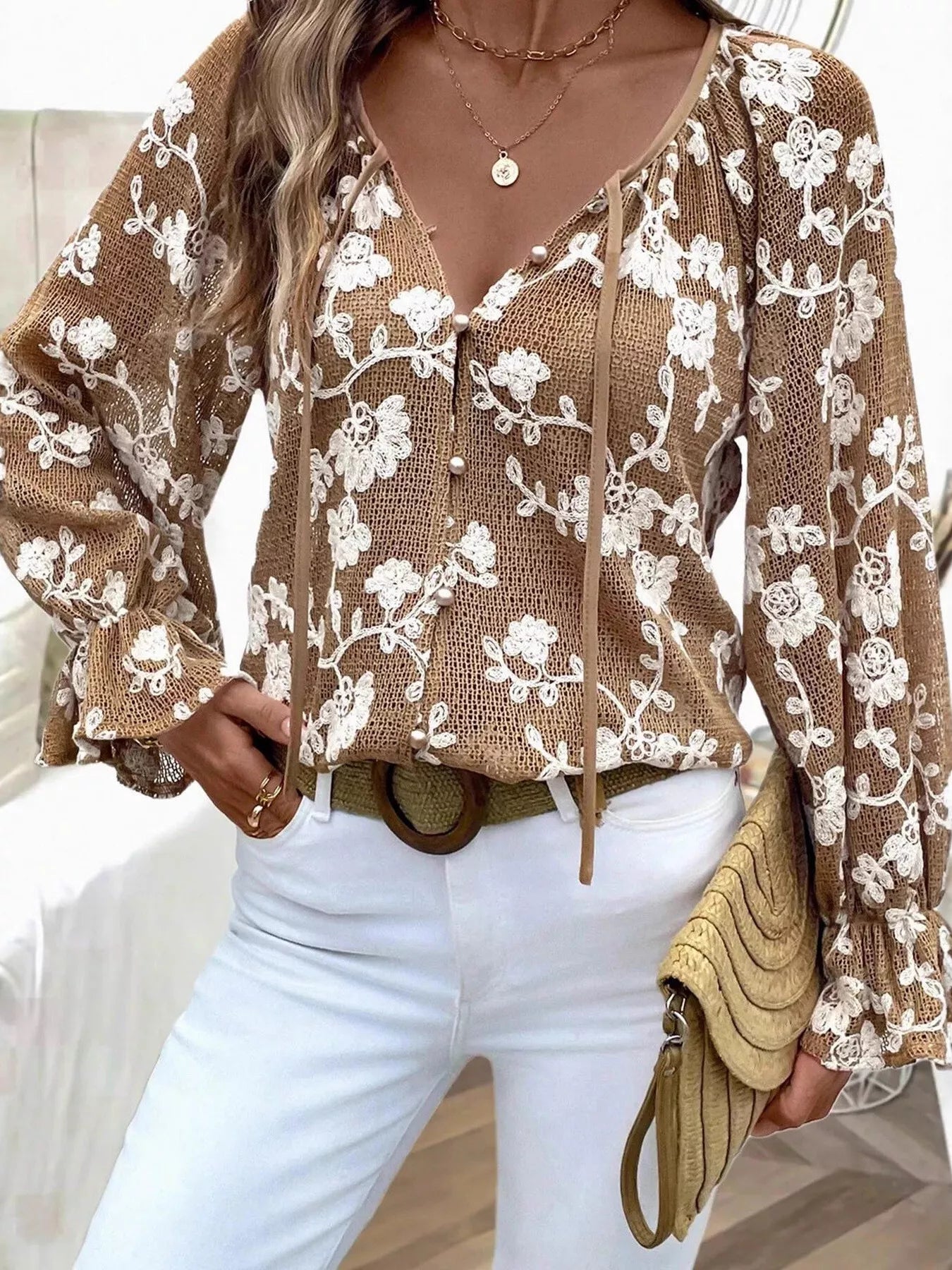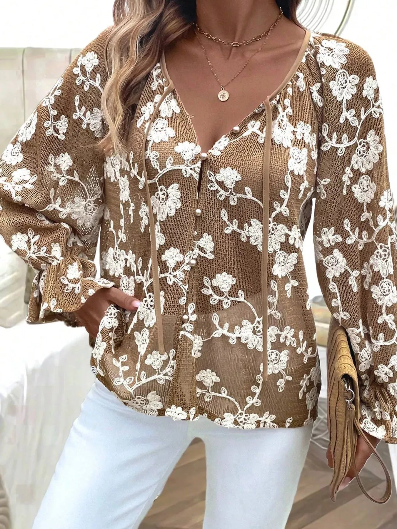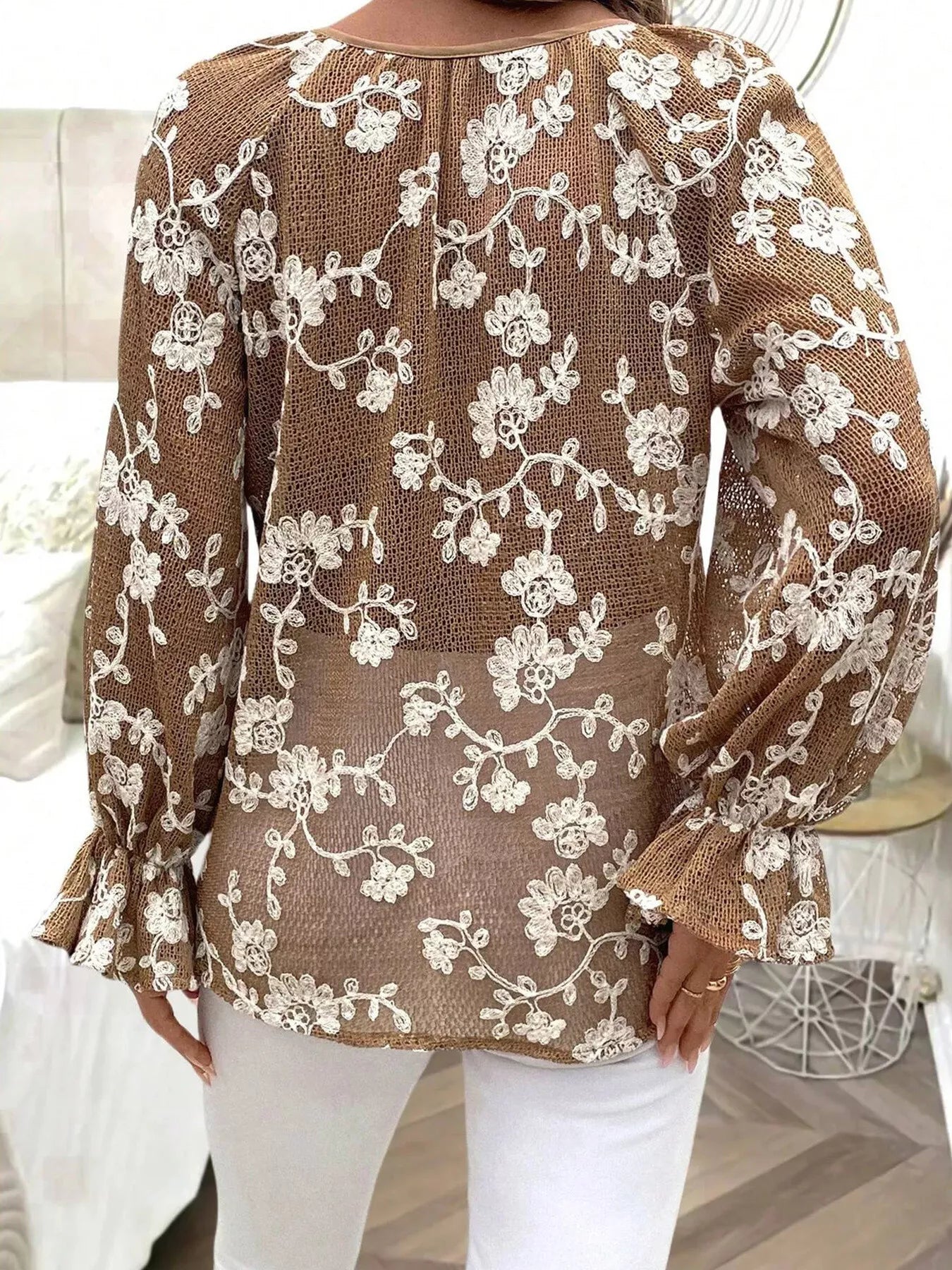 Floral Embroidered Long Sleeve Shirt