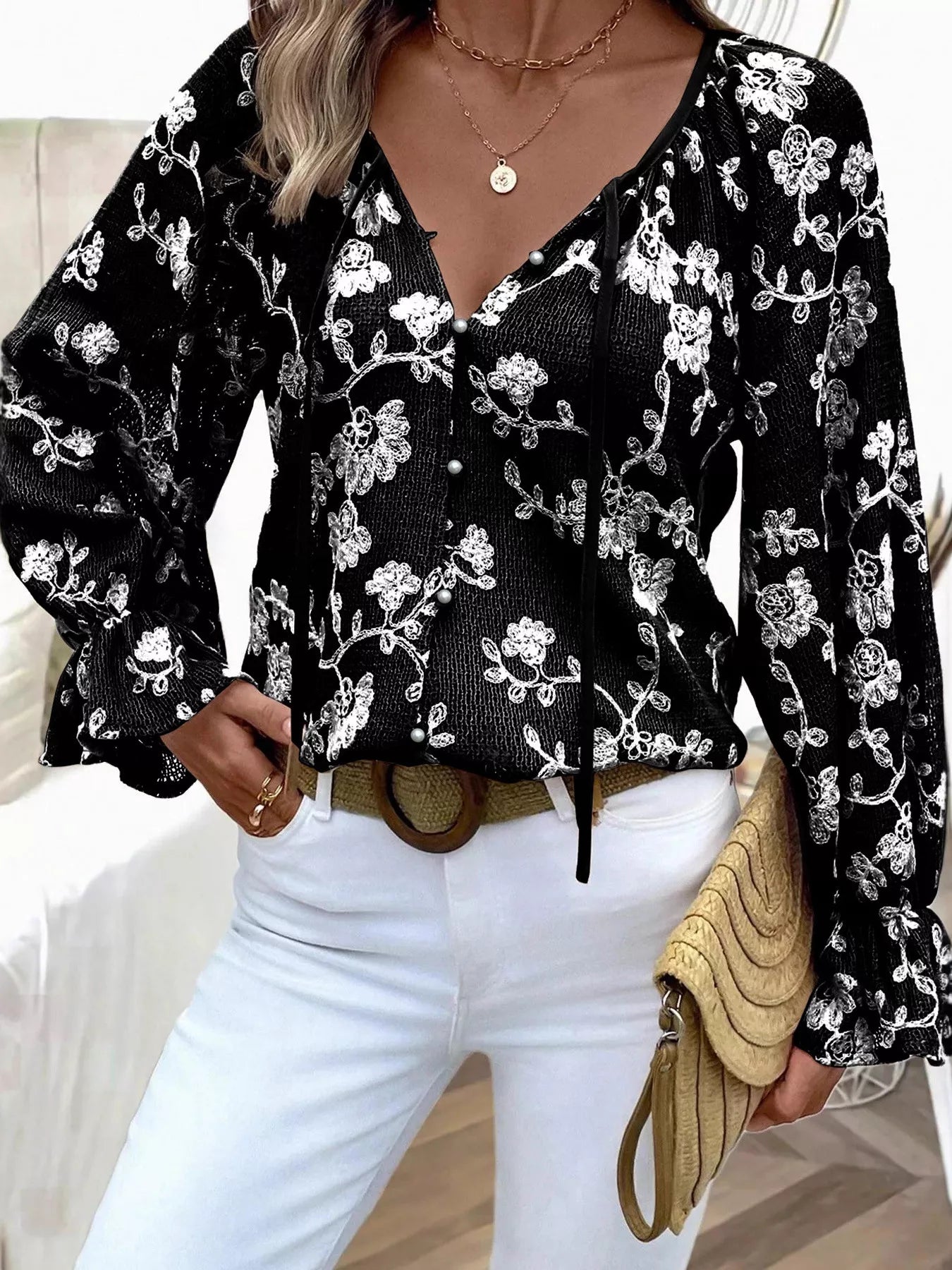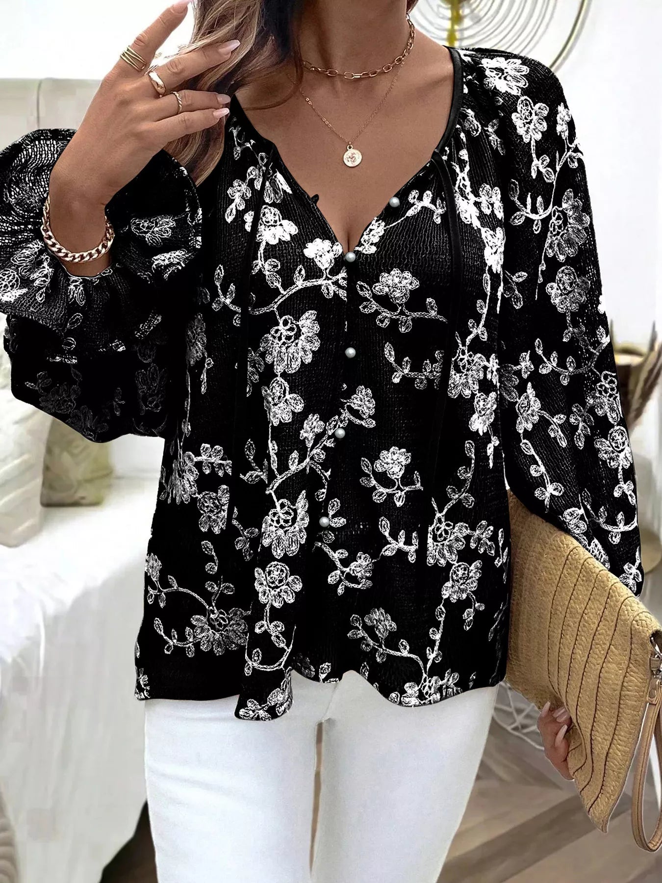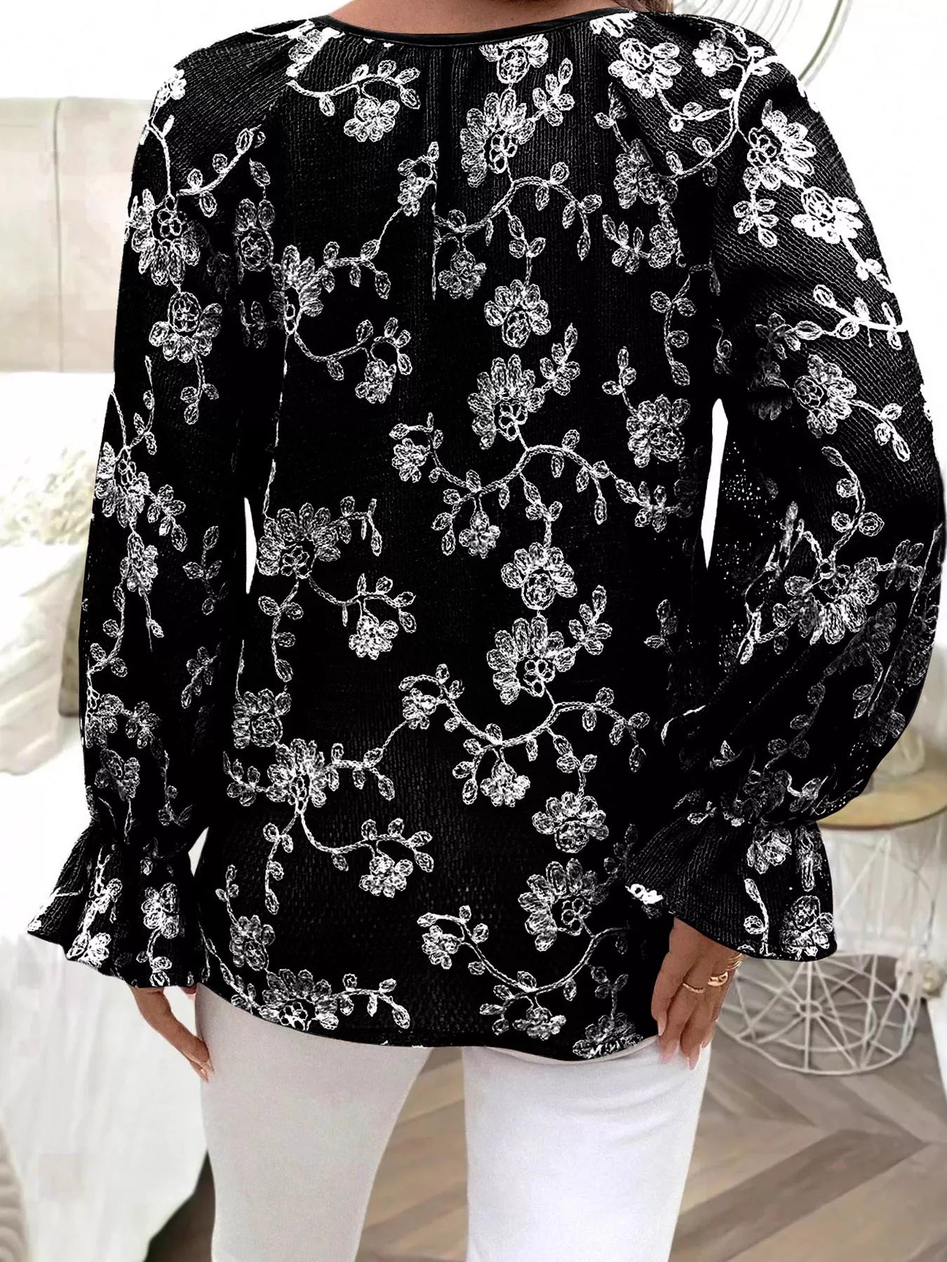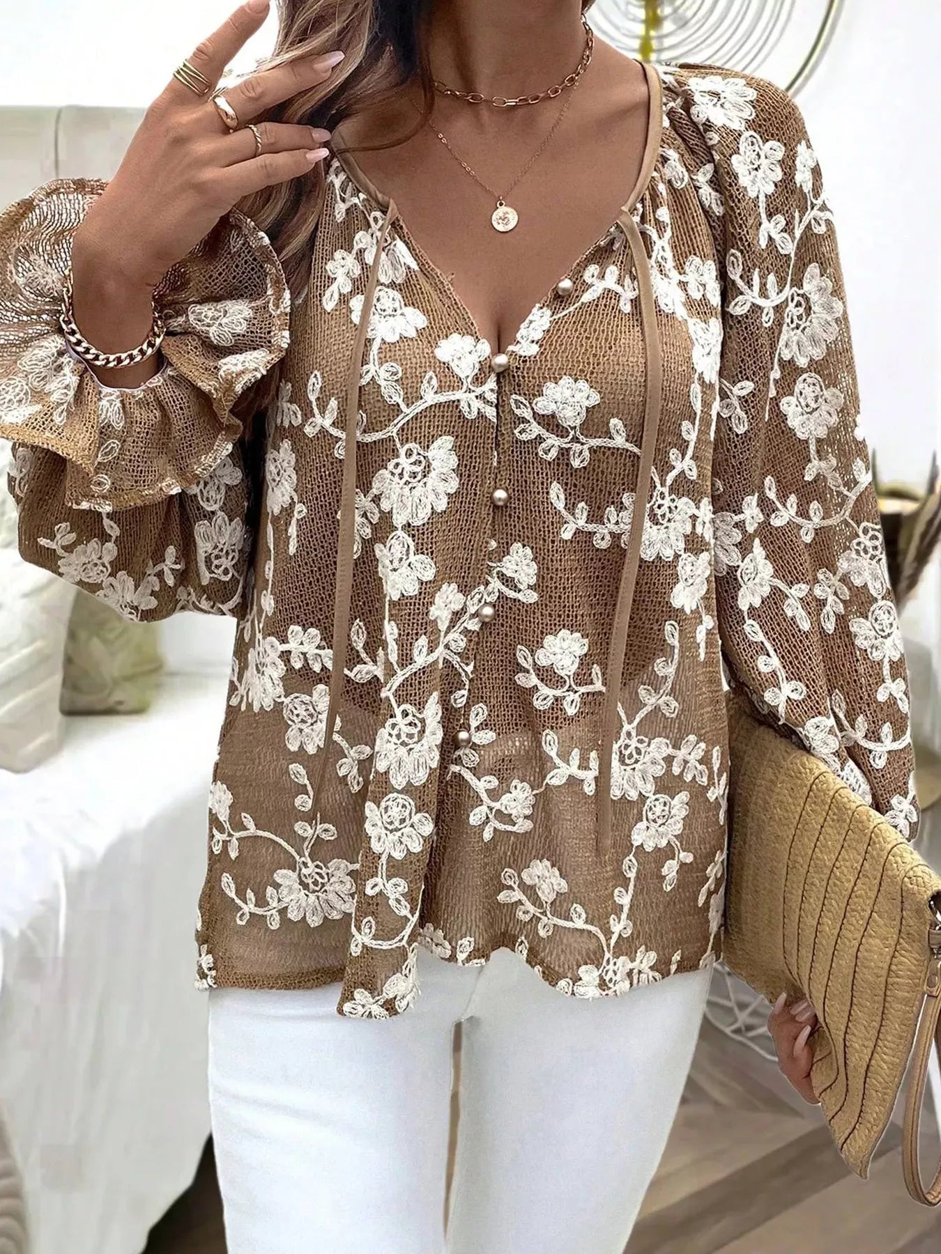 Floral Embroidered Long Sleeve Shirt