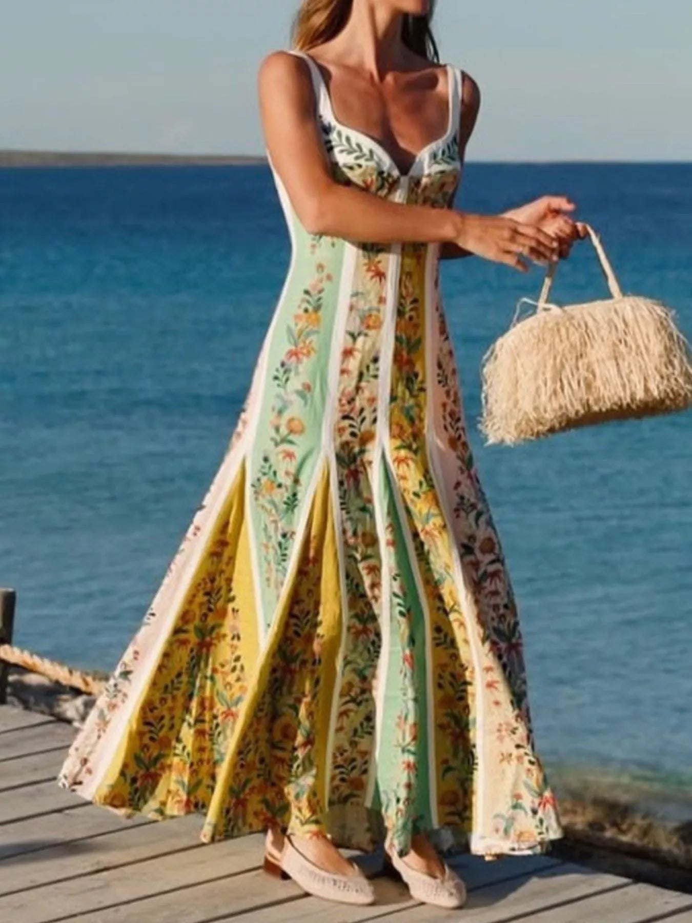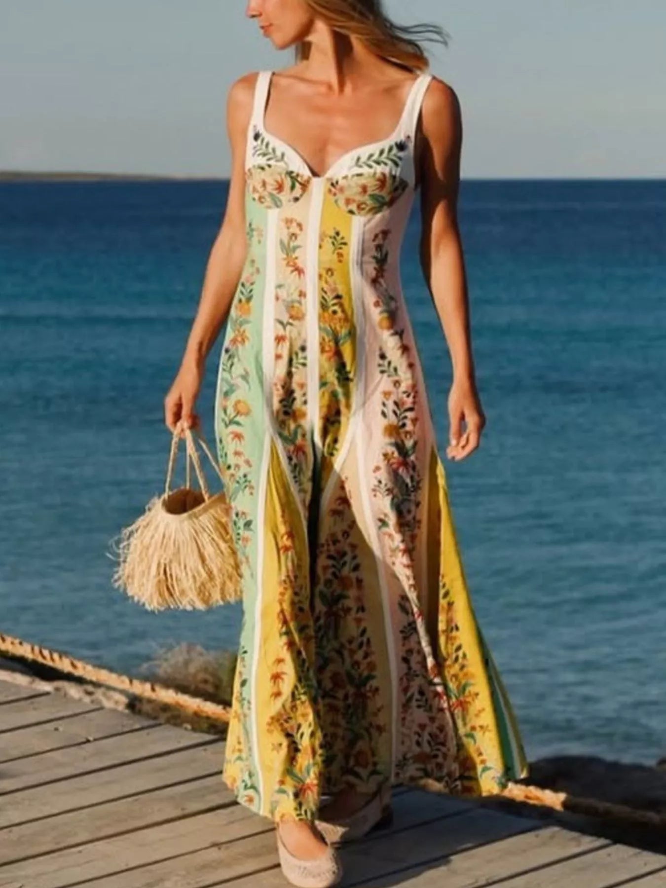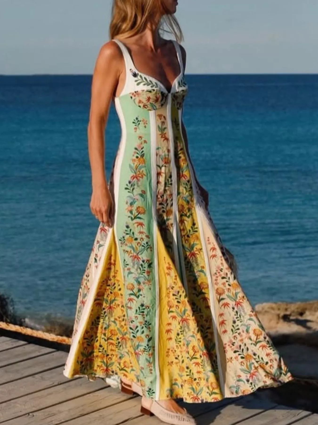 Floral Print Sweetheart Neck Maxi Dress