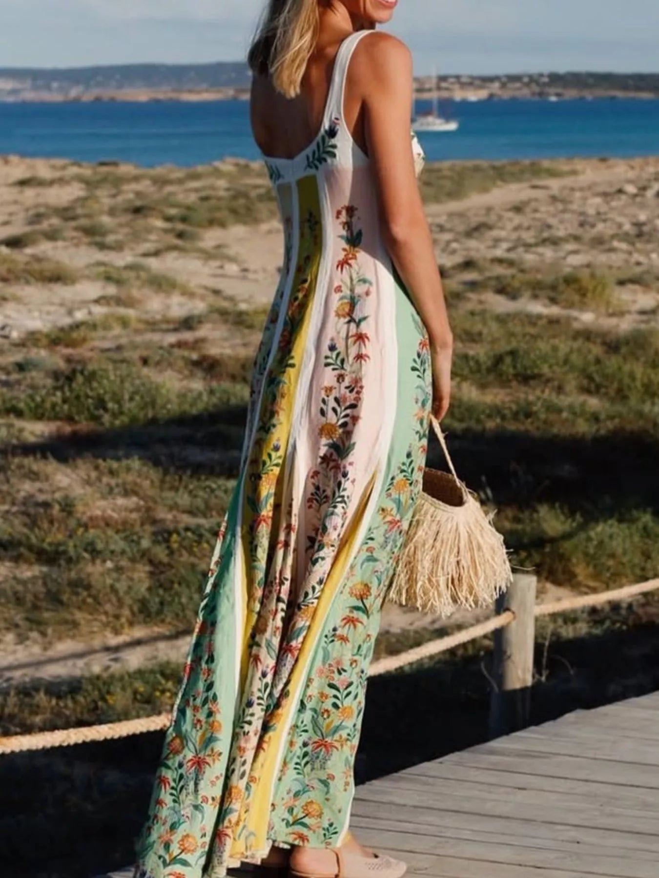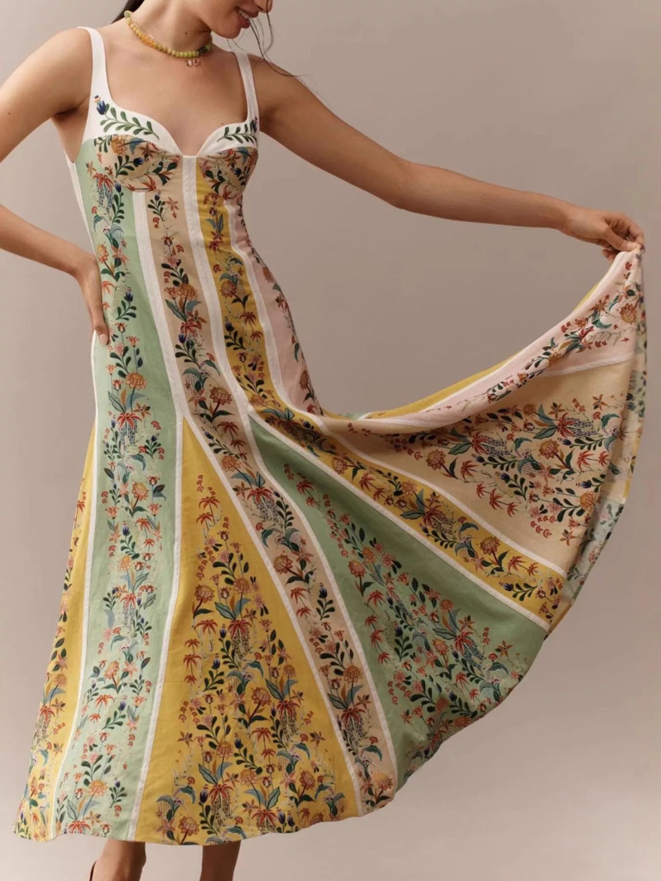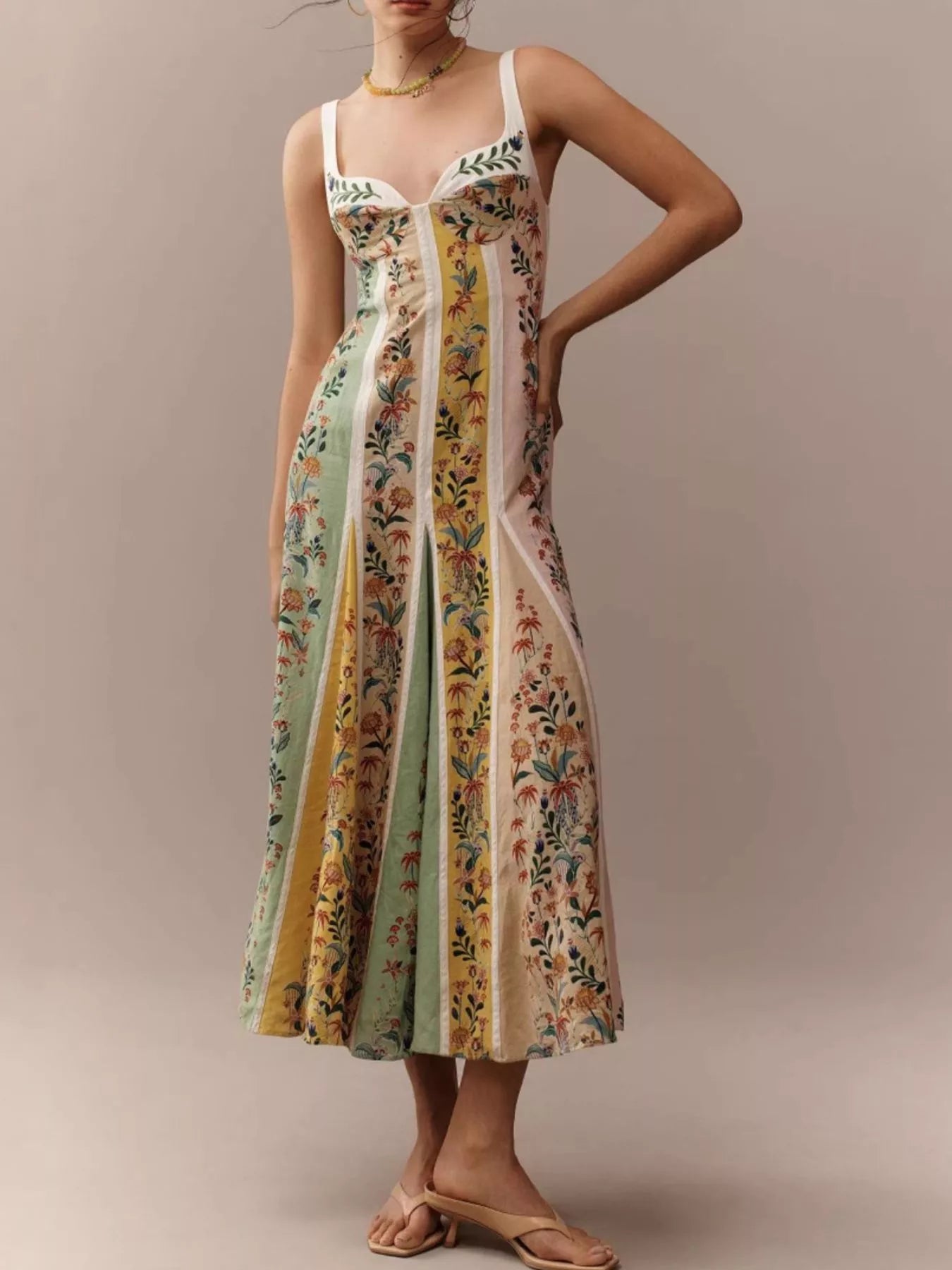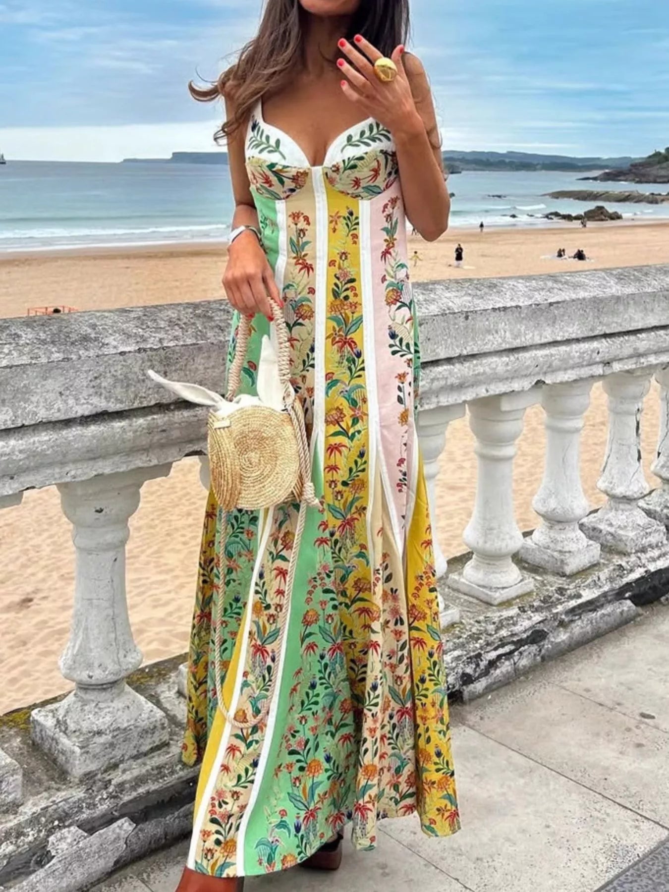 Floral Print Sweetheart Neck Maxi Dress