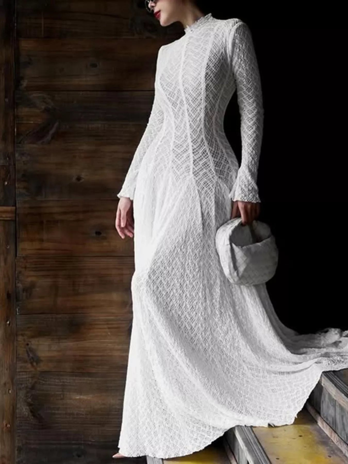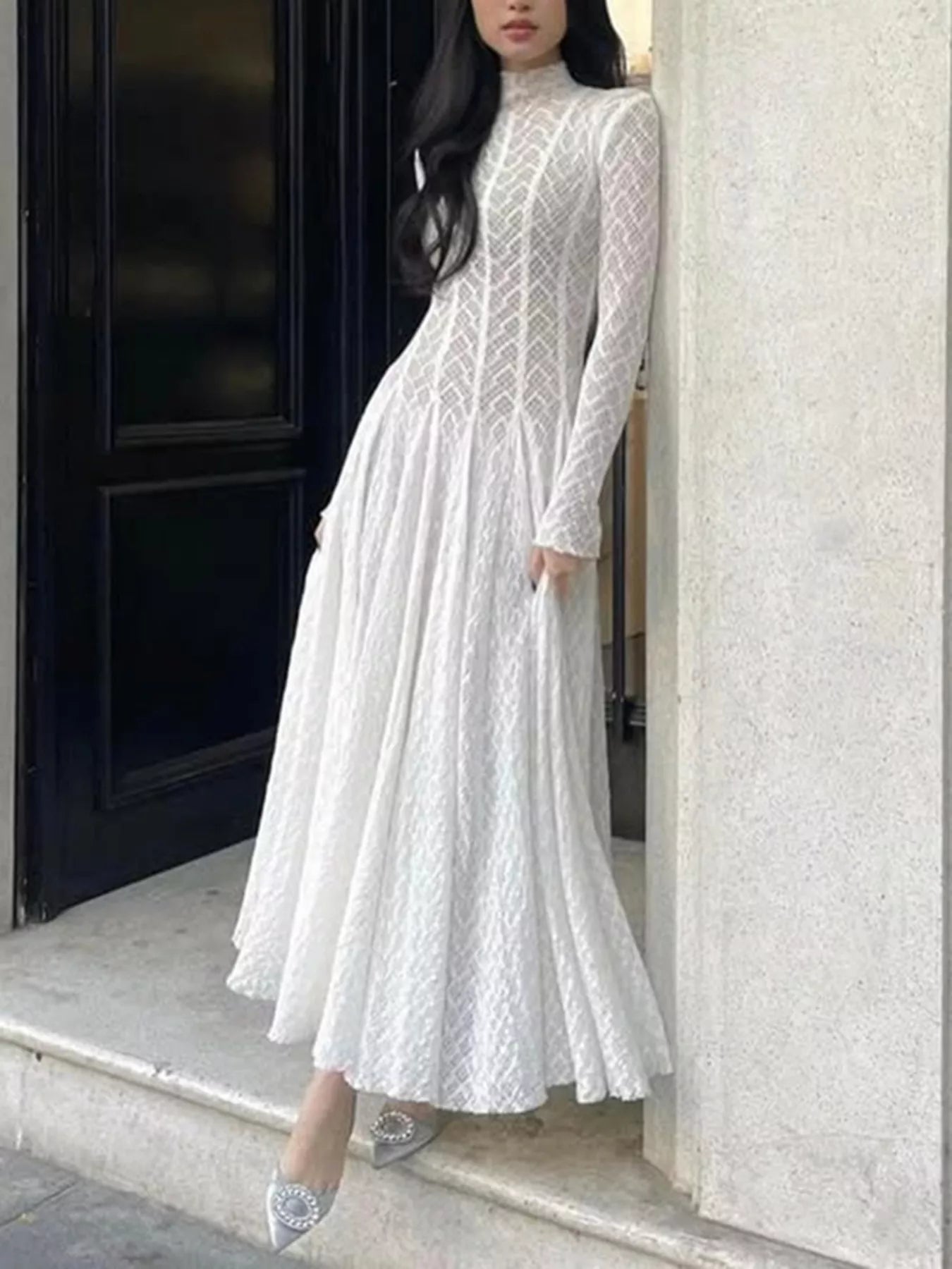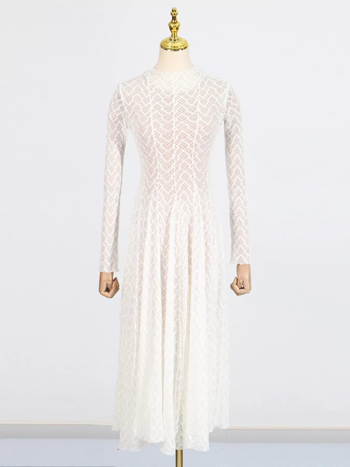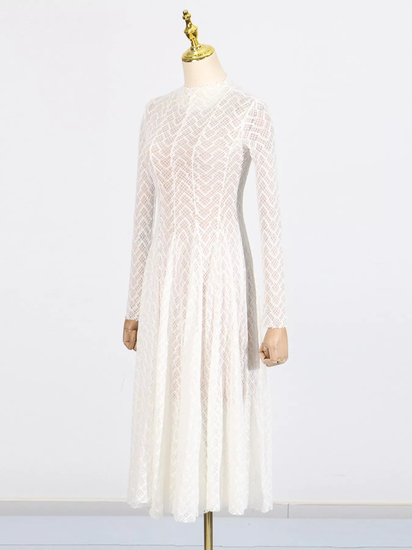 Lace Mock Neck Long Sleeve Maxi Dress
