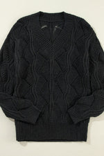 Hazel Blues® | Openwork V-Neck Long Sleeve Sweater