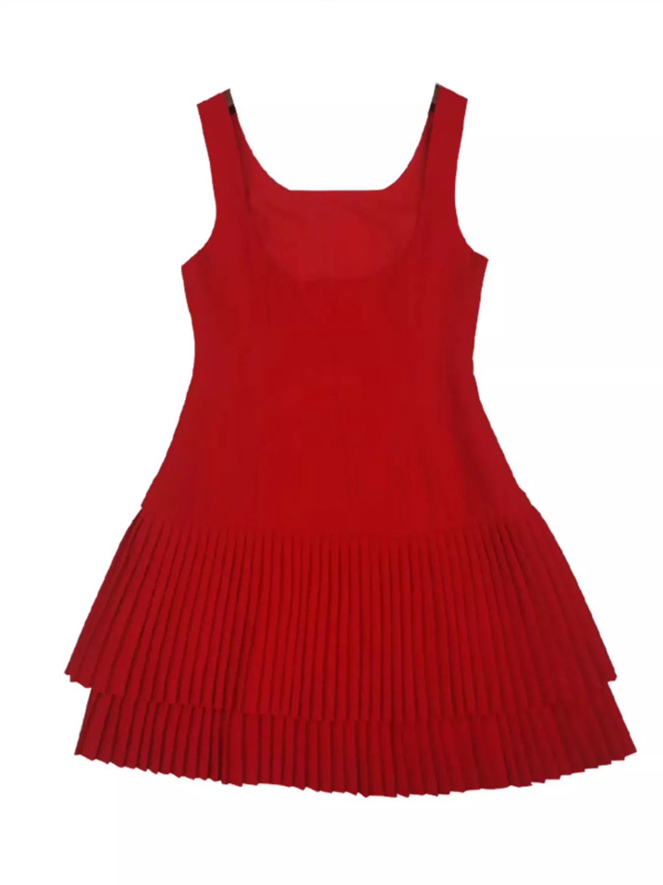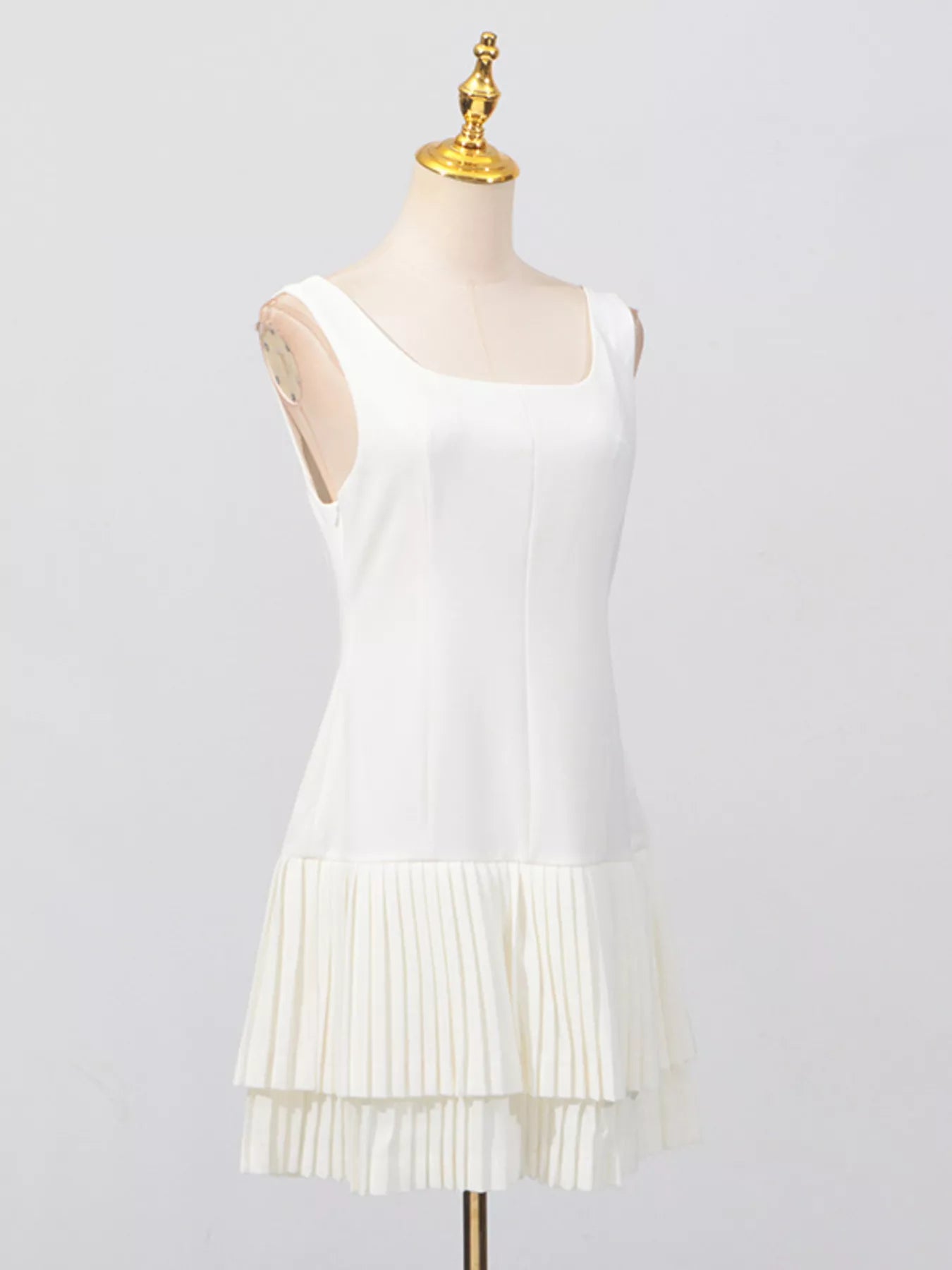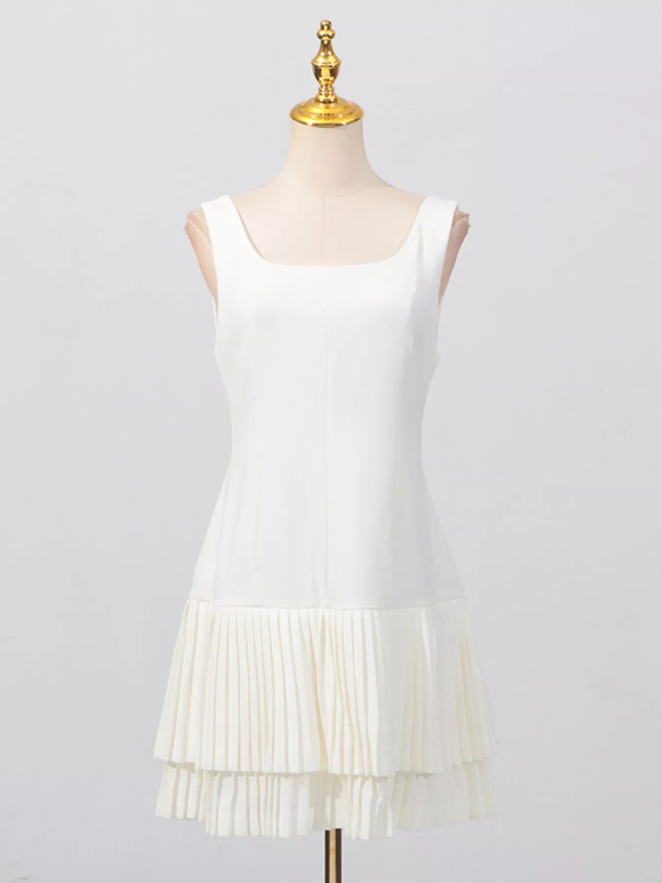 Square Neck Pleated Mini Dress