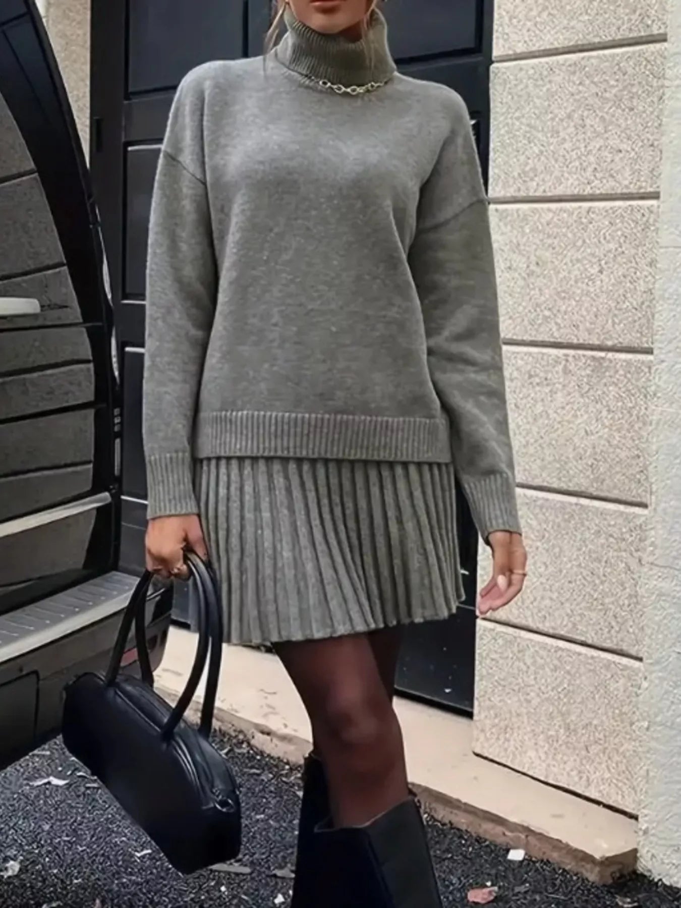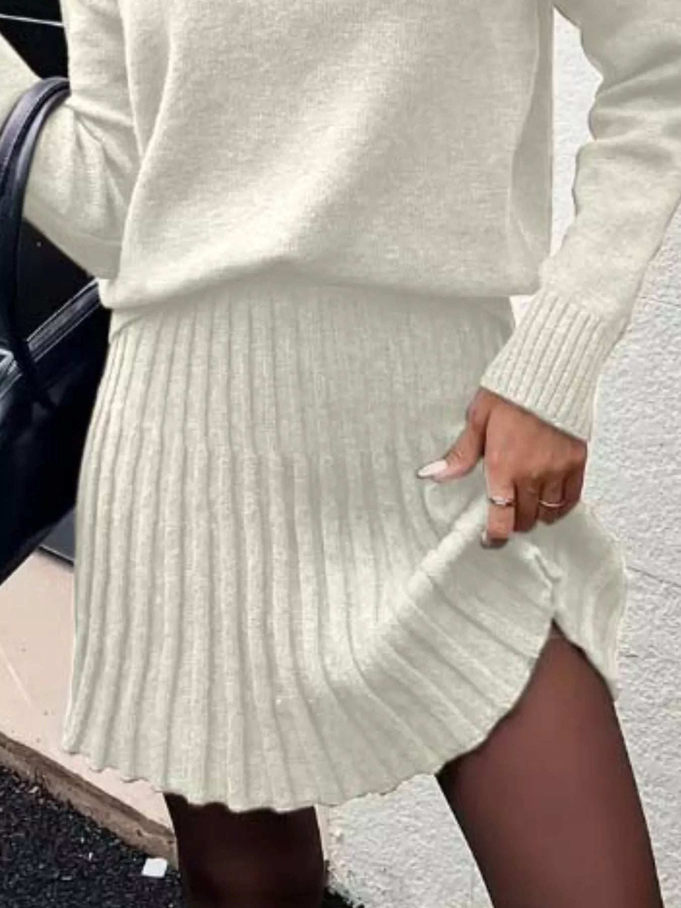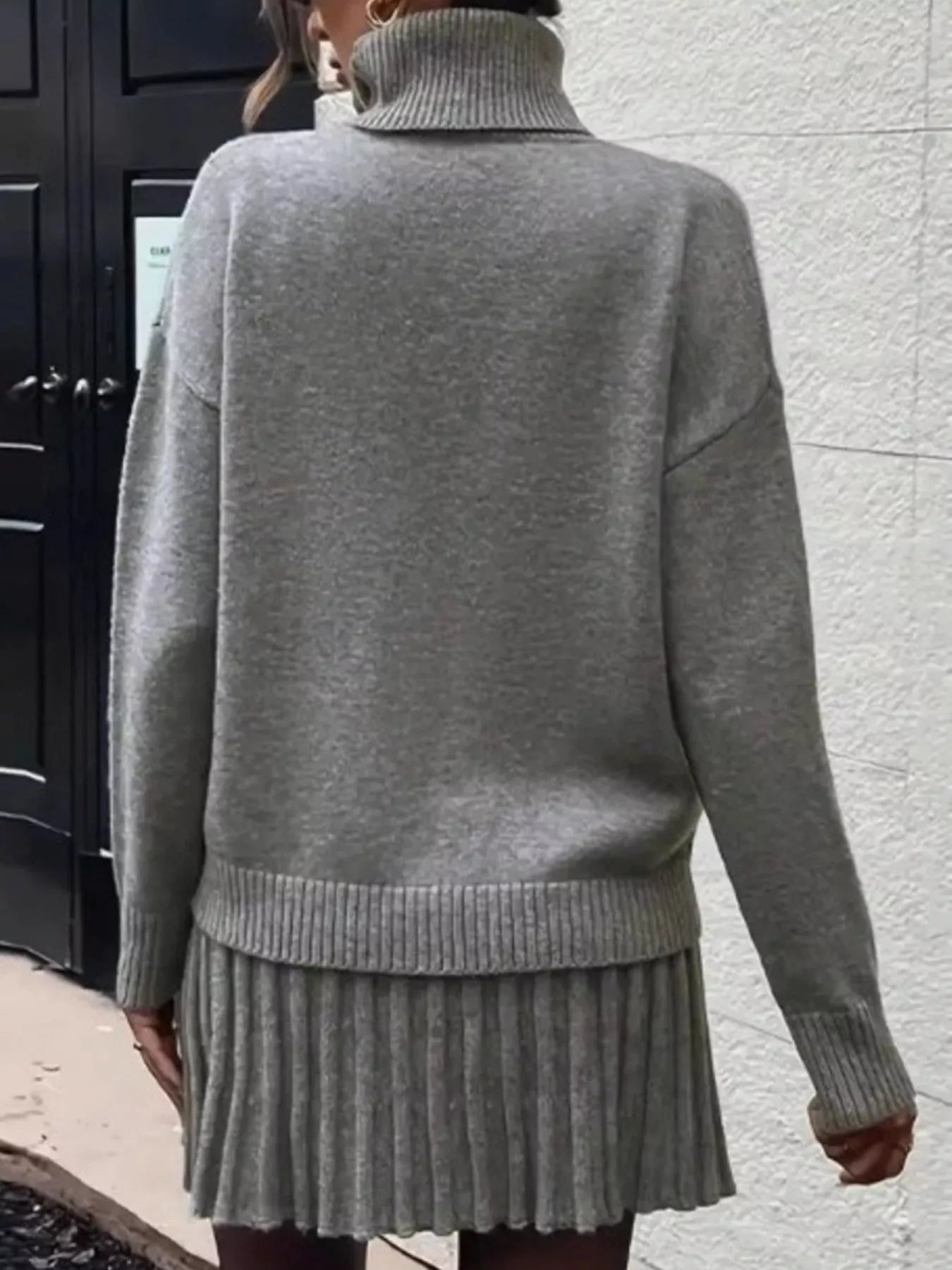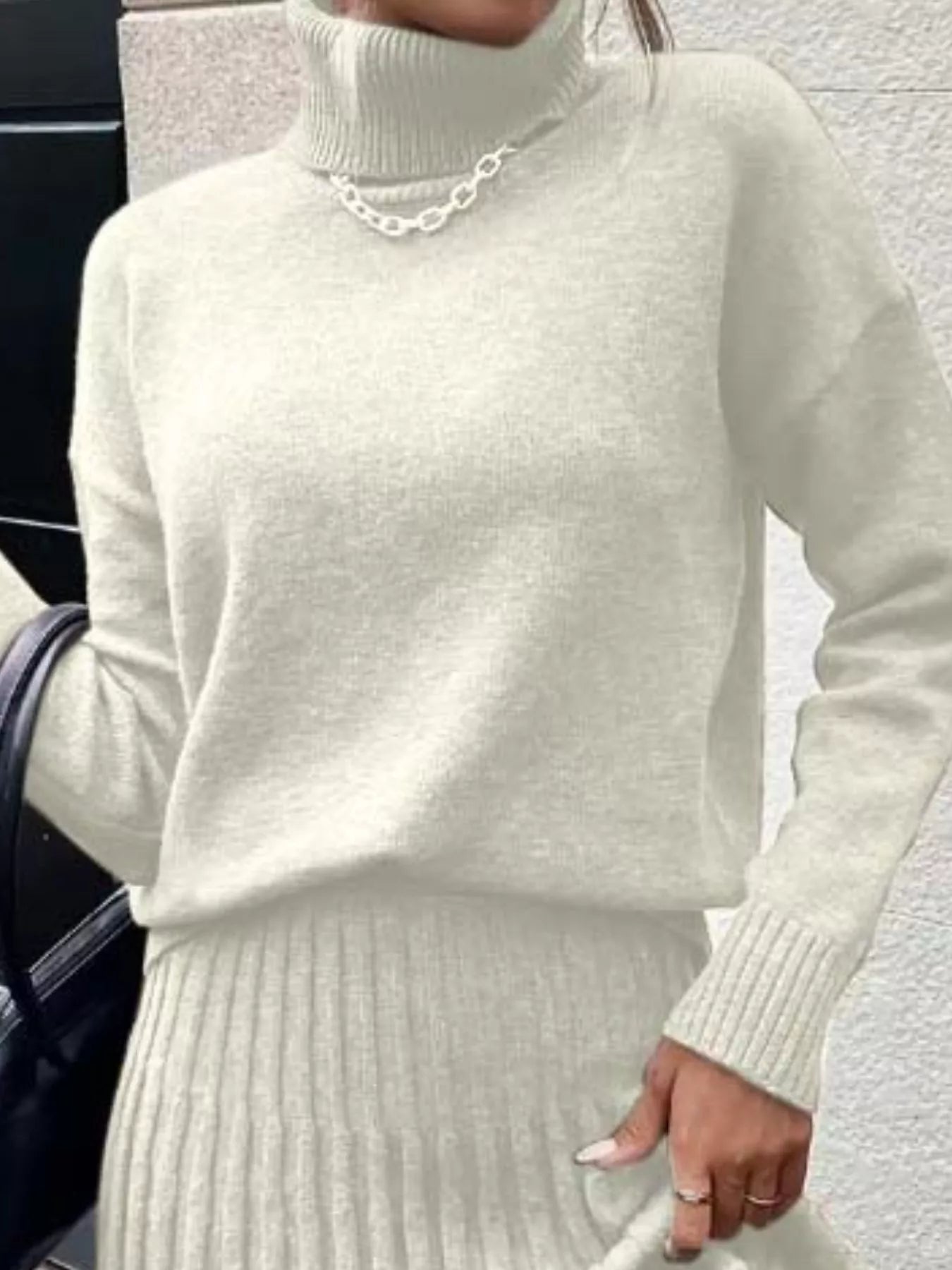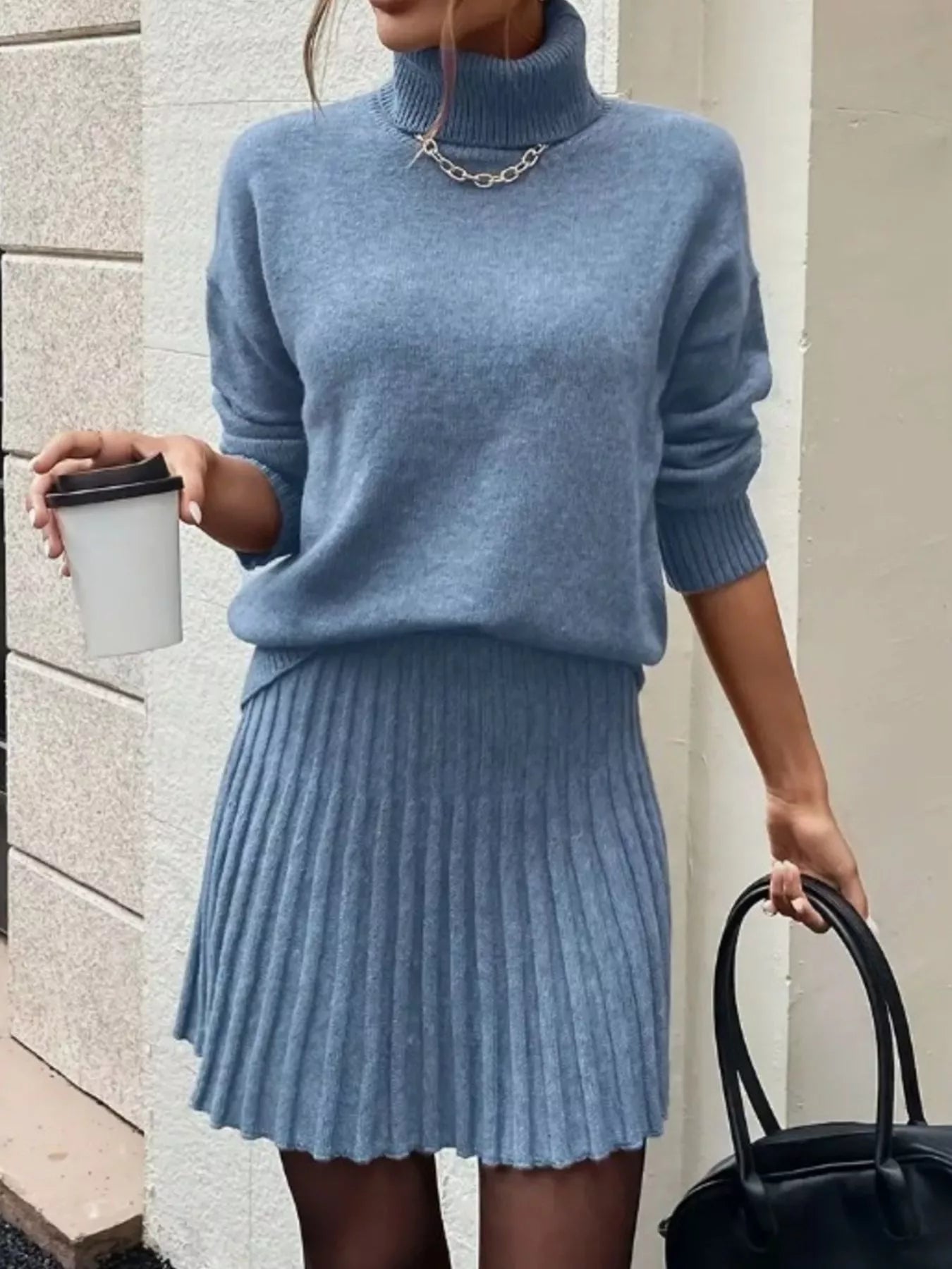 Turtleneck Long Sleeve Top and Skirt Sweater Set
